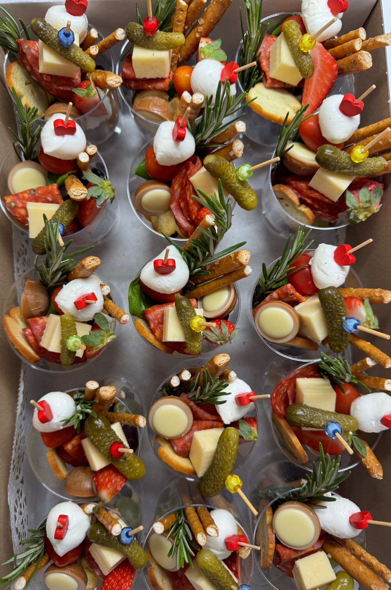 Pohár plný chutí. Ak sa neviete rozhodnúť, či siahnete po niečom sladkom alebo slanom, charcuterie pohárik je ideálna voľba. Ukrýva v sebe kúsok čokolády, mix orechov, niečo slané, údeniny, syry, čerstvé aj sušené ovocie...
