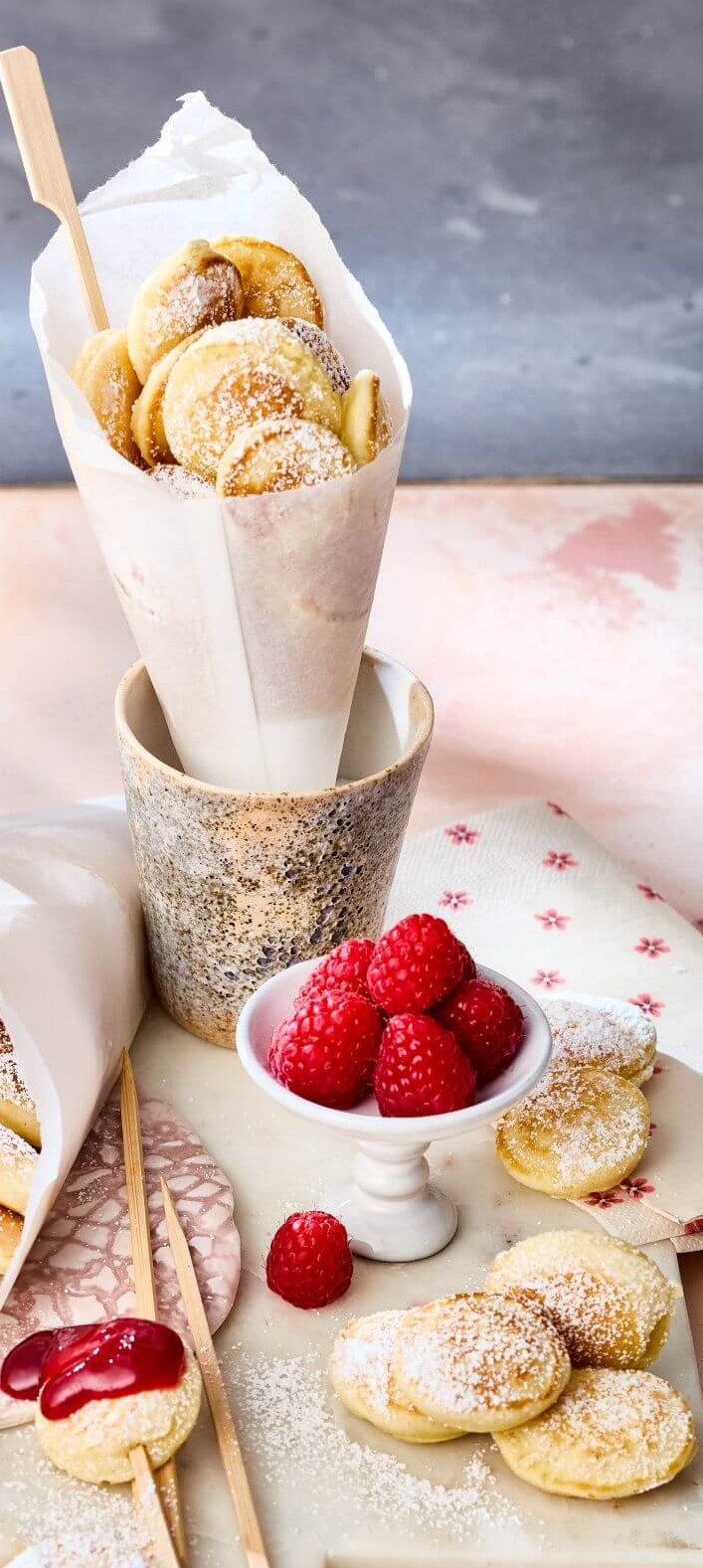 Malé lievančeky z nadýchaného cesta s maslovou chuťou a vanilkovou vôňou. Pochádzajú z Holandska a sú nazývajú ich poffertjes. Párty jedlo ich ponúka vo viacerých originálnych obmenách.